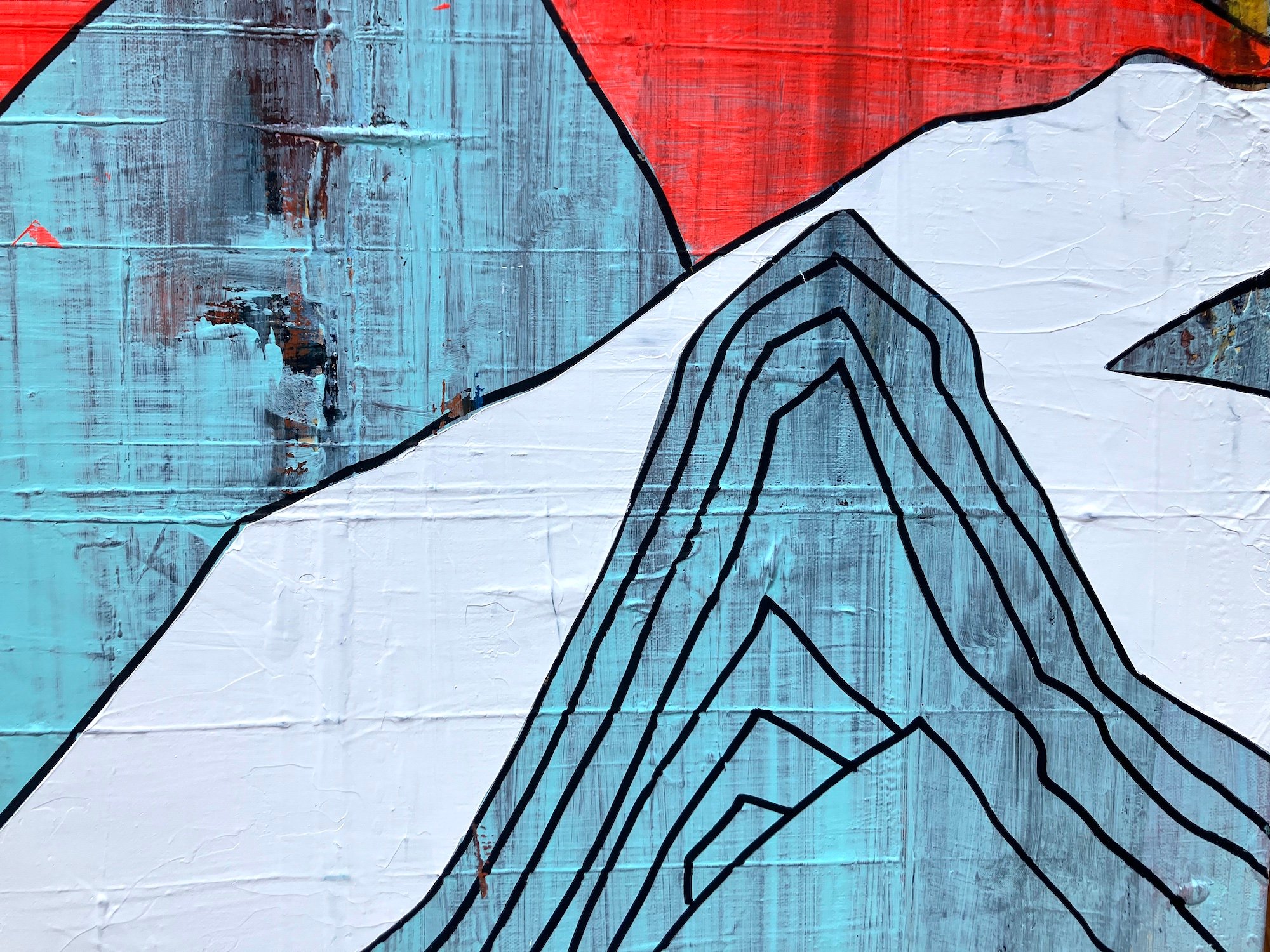 Original one of a kind hand created mixed media artwork on 30x 40x .15" gallery wrapped canvas. Finished with a final layer of protective varnish and all sides are painted satin black so a frame is not necessary.