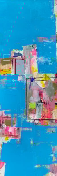 Original one of a kind mixed media painting on 12x 36x 1.5" gallery wrapped canvas. Artwork is finished with a final layer of protective varnish and all sides are painted satin black. Painting ships in a custom built wooden crate. Ready to hang and signed on the back.